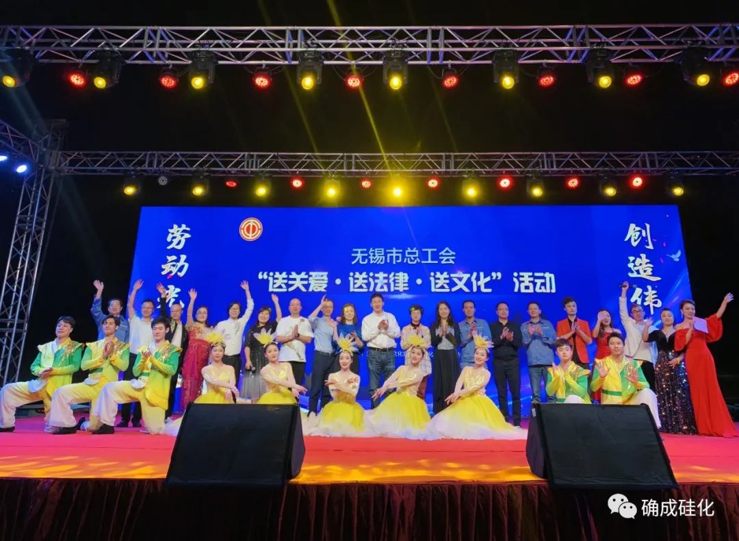9月27日晚,由無錫市總工會、錫山區(qū)總工會、東港鎮(zhèn)總工會聯(lián)合主辦,無錫市工人文化宮、確成硅化學(xué)股份有限公司承辦的“送關(guān)愛·送法律·送文化”主題文藝晚會在確成草坪廣場成功舉辦。